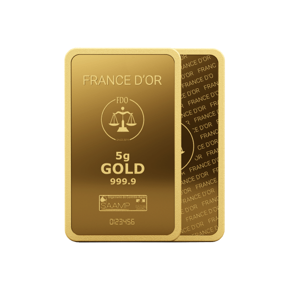 Lingotin d’or de 5 grammes, format idéal pour l’épargne régulière. Pureté 999.9‰, certifié LBMA.